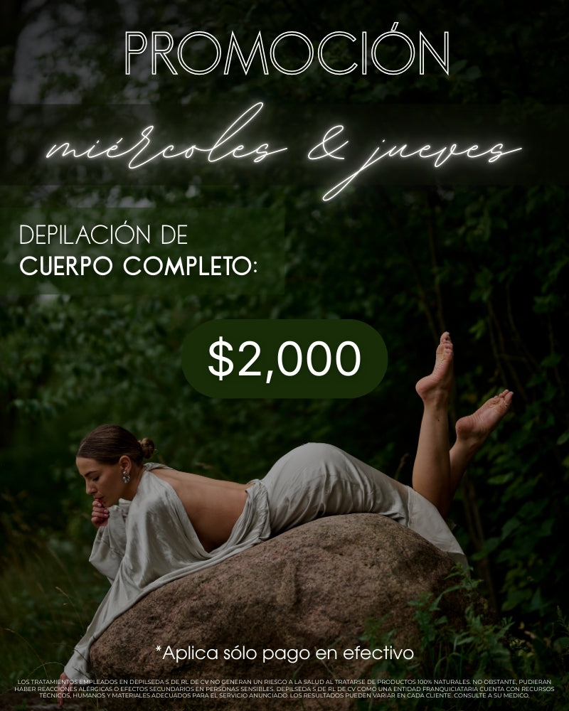 Aprovecha nuestra promoción y disfruta una piel suave de pies a cabeza por solo $2,000. Aplica únicamente pago en efectivo.